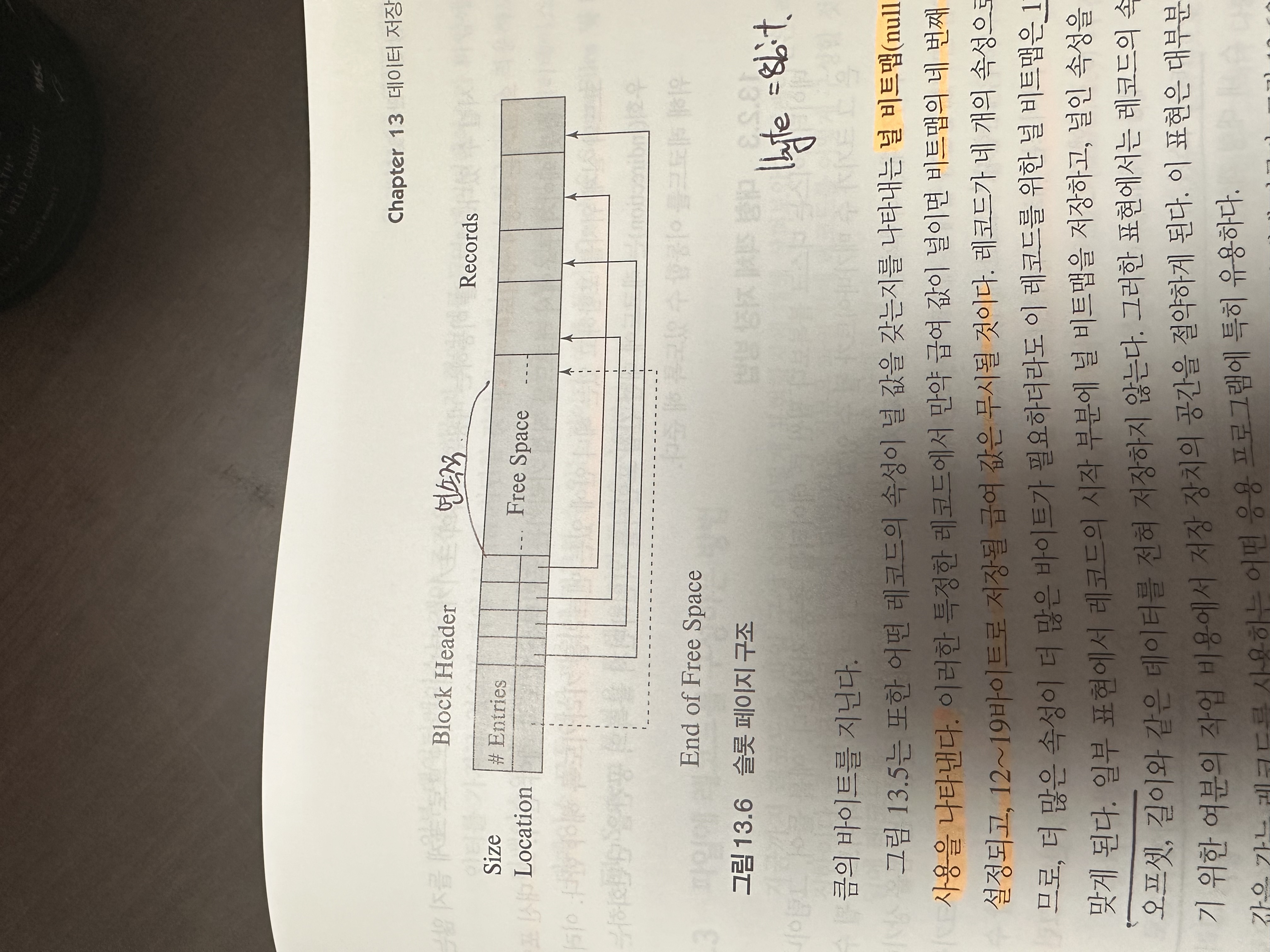 - 이구조에서 실제 레코드는 블록의 끝에서 부터 인접하게 할당된다. 4KB블록이면 4048bit부터 거꾸로 써진다는 이야기이다.
